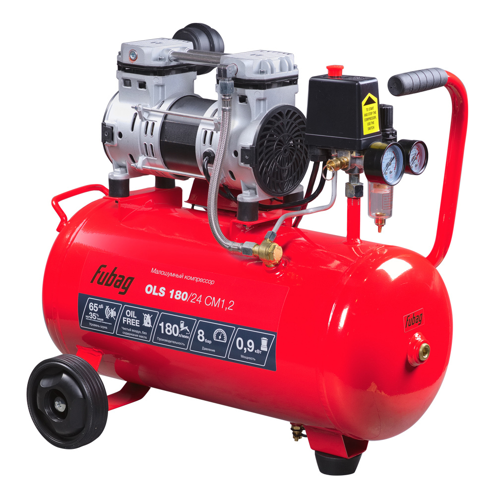 Безмасляный коаксиальный компрессор Fubag OLS 180/24 CM1.2 производительностью 180 л/мин - лучший выбор, если нужен чистый, без примесей масла, воздух при работе с краскопультами, аэрографами и другими окрасочными инструментами для проведения ответственных покрасочных работ.
